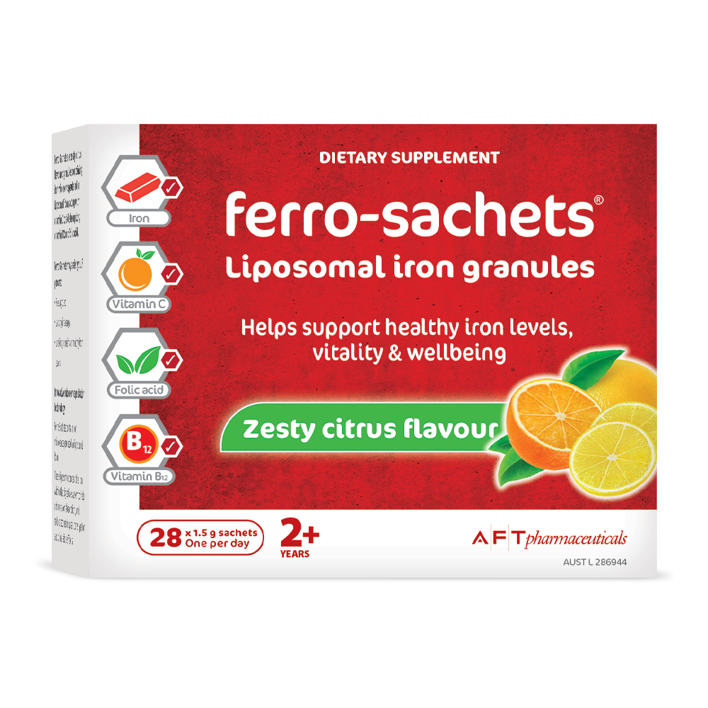 Each sachet contains 14 mg of elemental iron to help maintain healthy iron levels, energy and vitality.