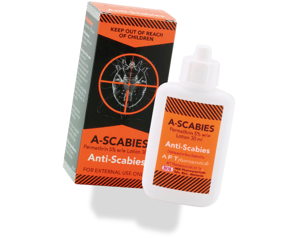 A-Scabies also contains: propyl paraben, methyl paraben, imidazolidinyl urea, menthol, triclosan, xanthan gum, polyethylene glycol-40 castor oil, cetearyl alcohol & PEG-20 stearate, liquid paraffin and propylene glycol.