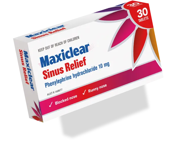 如果您有高血压、心脏病、怀孕或哺乳期或服用抗抑郁药物,请在服用本产品前咨询您的医生。在将 Maxiclear® 鼻窦舒缓与任何其他旨在治疗普通感冒症状的药物(包括补充药物)一起服用之前,请寻求医疗保健专业建议。