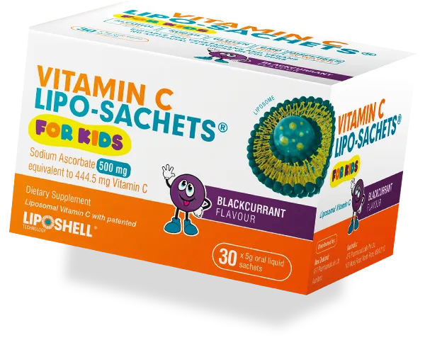新一代 Lipo-Sachets® 儿童利铂维生素 C使用 LIPOSHELL® 专利技术,提供比标准维生素 C 补充剂更好的吸收。